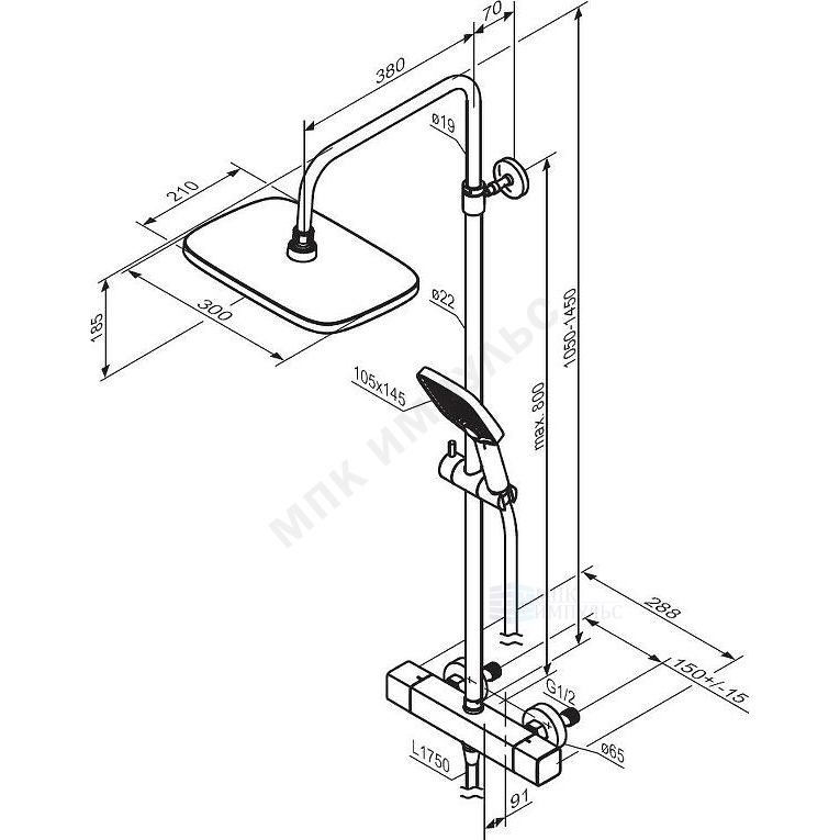 Система душевая с термостатическим смесителем черный Gala Damixa 953800300