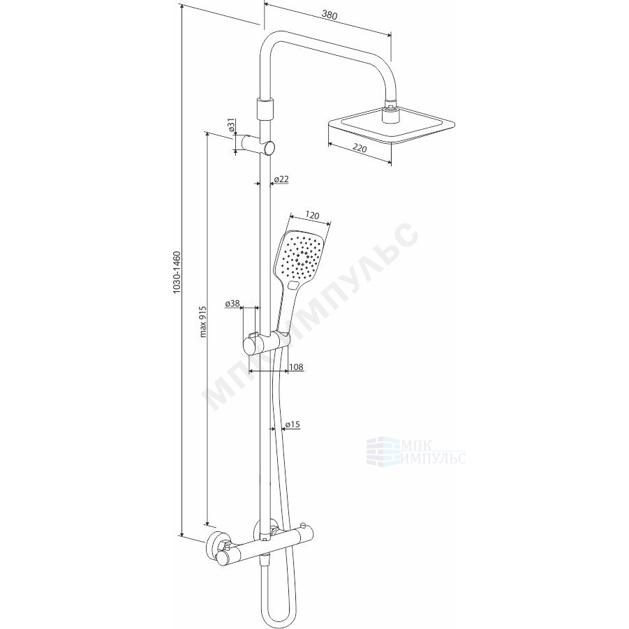 Система душевая с термостатическим смесителем хром Option Damixa DX218092000