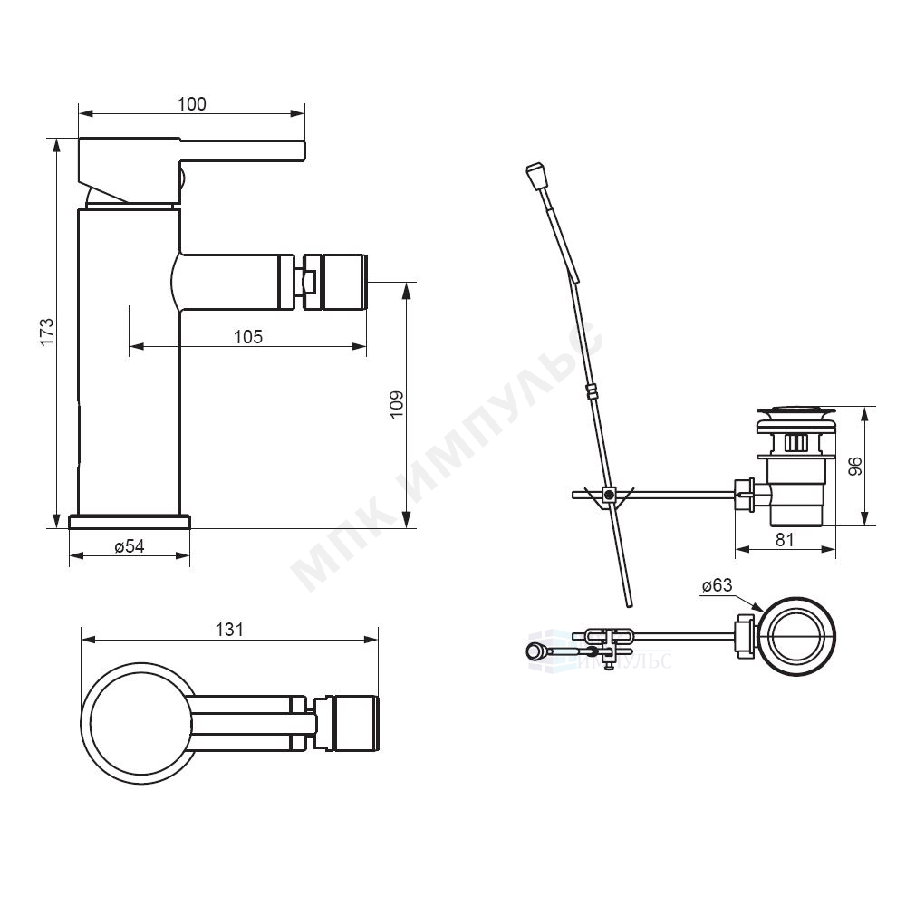 Смеситель для биде одноручный хром с донным клапаном Scandinavian Pure Damixa 360240000