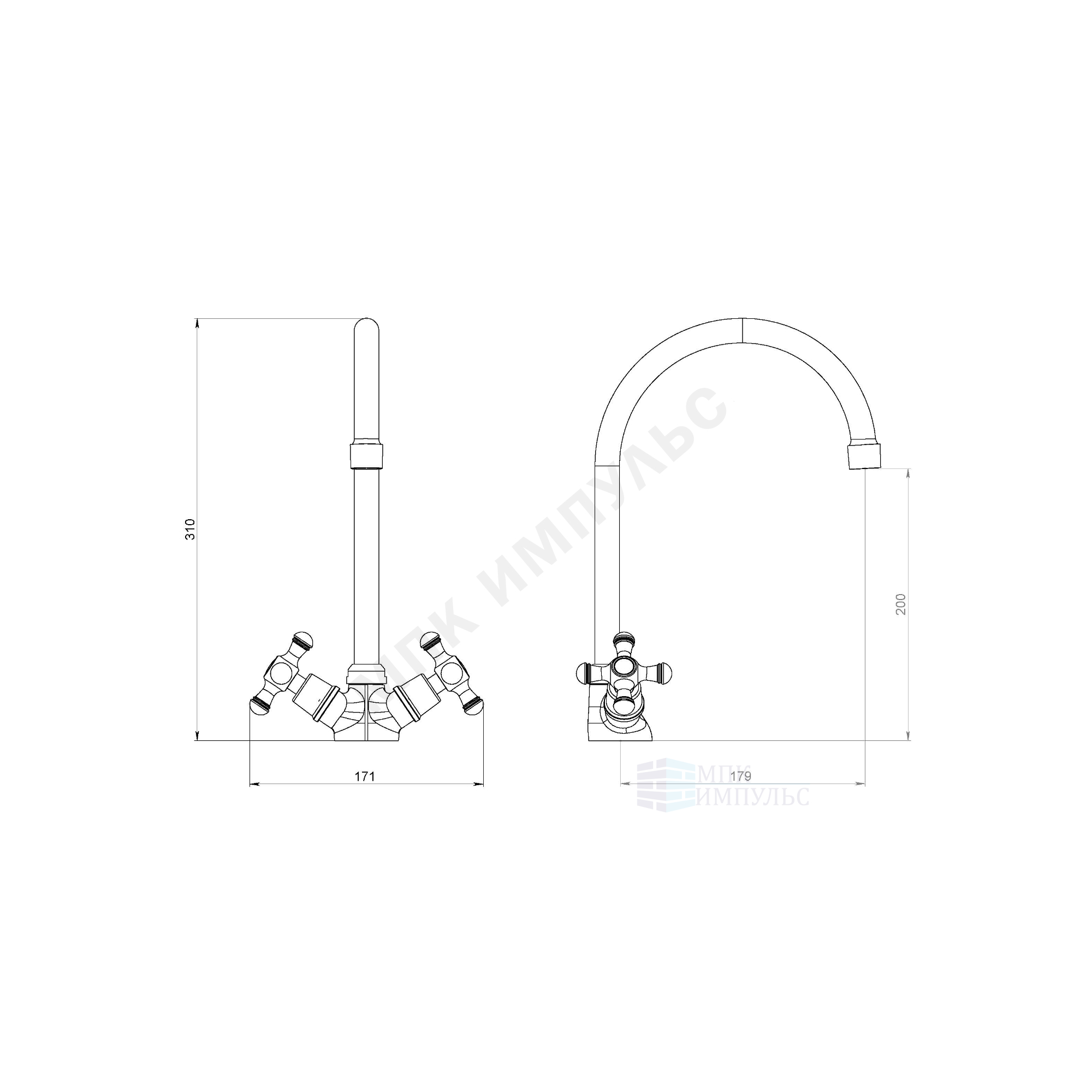Смеситель для кухонной мойки двуручный хром RETRO Damixa 230000000