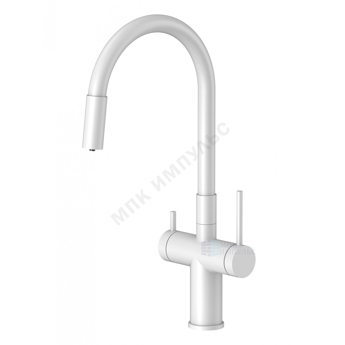 Смеситель для кухонной мойки ручка сбоку одноручный гибкий излив с каналом для питьевой воды белый Энсо Santek WH5A43127B001