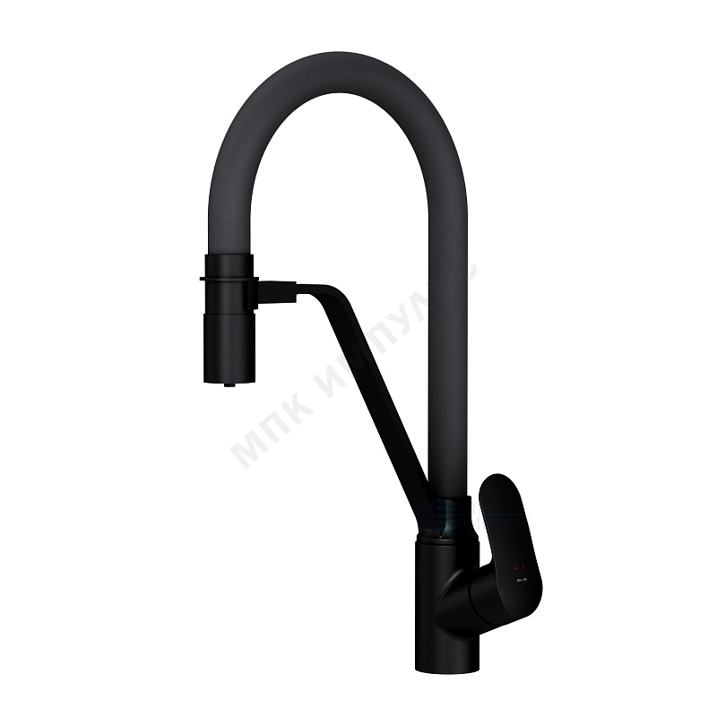 Смеситель для кухонной мойки ручка сбоку одноручный гибкий излив с каналом для питьевой воды черный/серый Like AM.PM F8007825