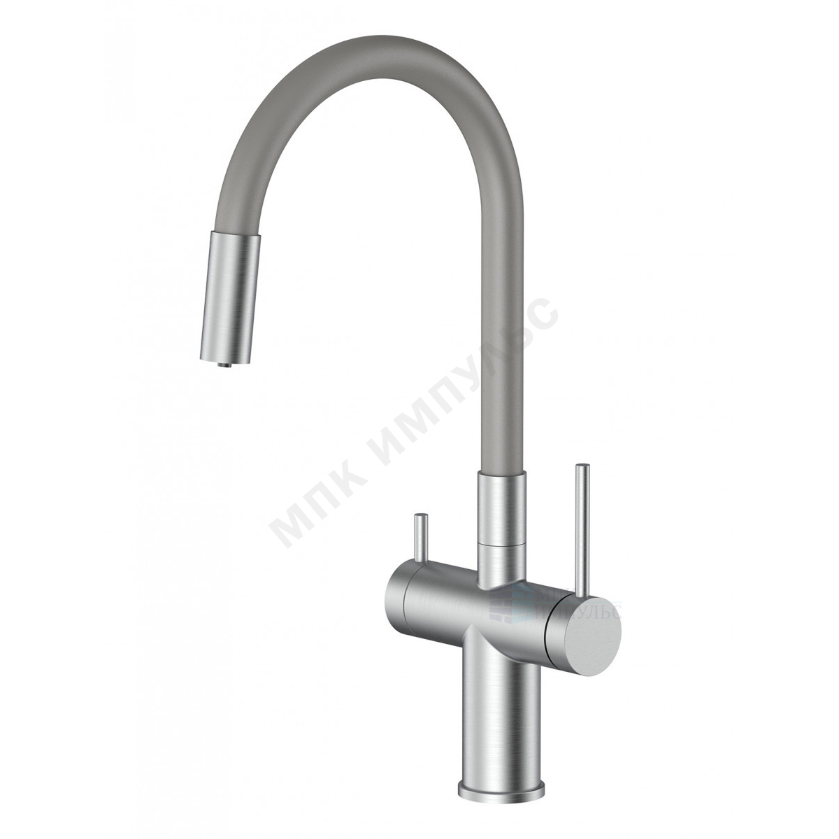 Смеситель для кухонной мойки ручка сбоку одноручный гибкий излив с каналом для питьевой воды сатин Энсо Santek WH5A43127AP01