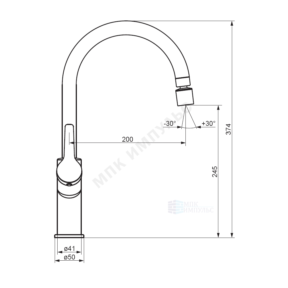 Смеситель для кухонной мойки ручка сбоку одноручный хром Eclipse Damixa 310722000