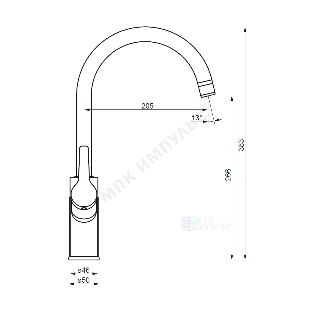 Смеситель для кухонной мойки ручка сбоку одноручный излив с каналом для питьевой воды черный Eclipse Damixa 310721300