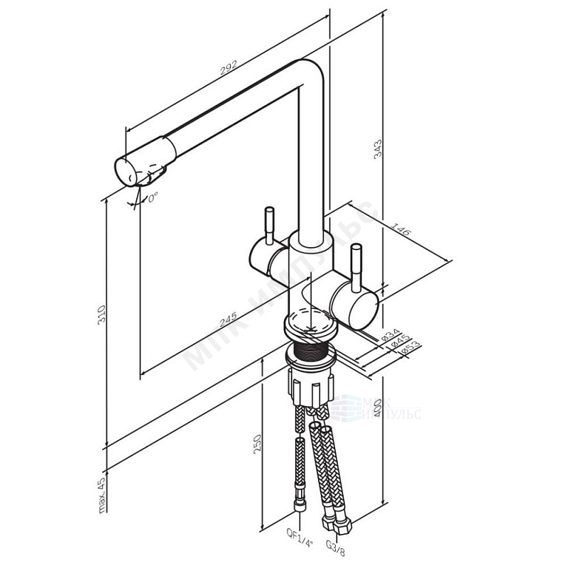 Смеситель для кухонной мойки ручка сбоку одноручный излив с каналом для питьевой воды сатин X-Joy AM.PM F85B05700