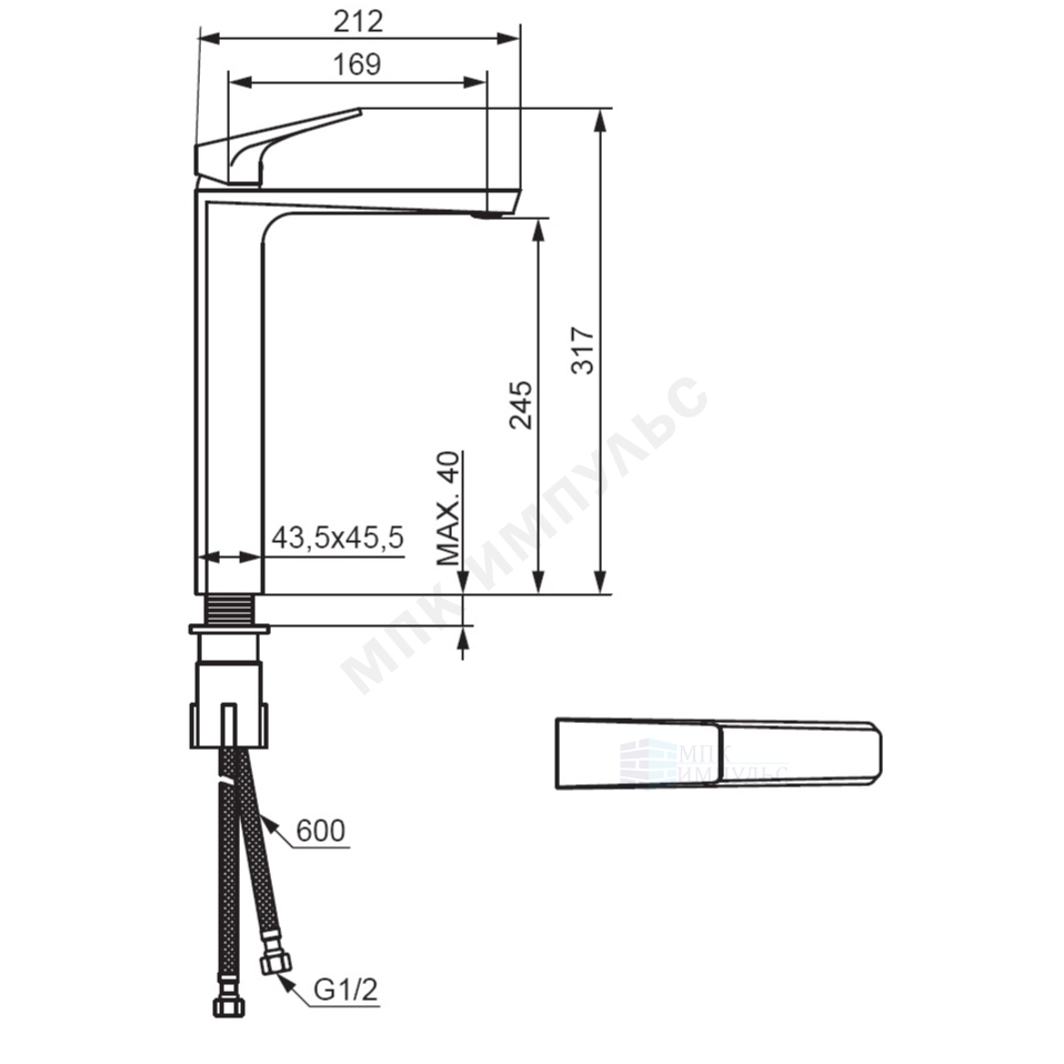 Смеситель для умывальника одноручный черный Merkur Damixa 400250300