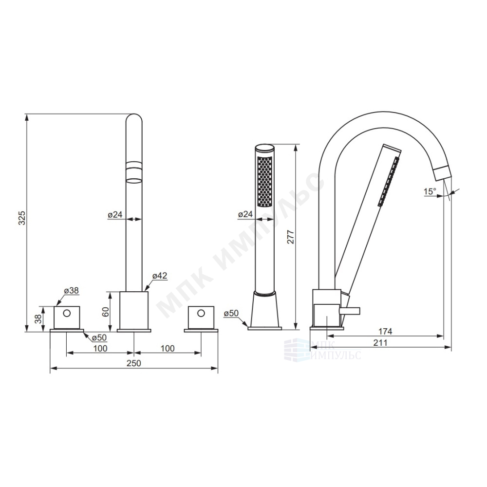 Смеситель для ванны с душем двуручный черный Scandinavian Pure Damixa 360400300