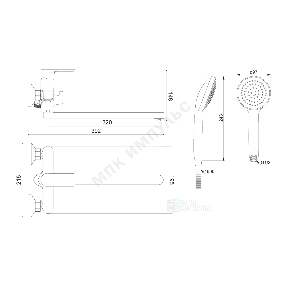 Смеситель для ванны с душем одноручный хром Apollo Damixa 479500000