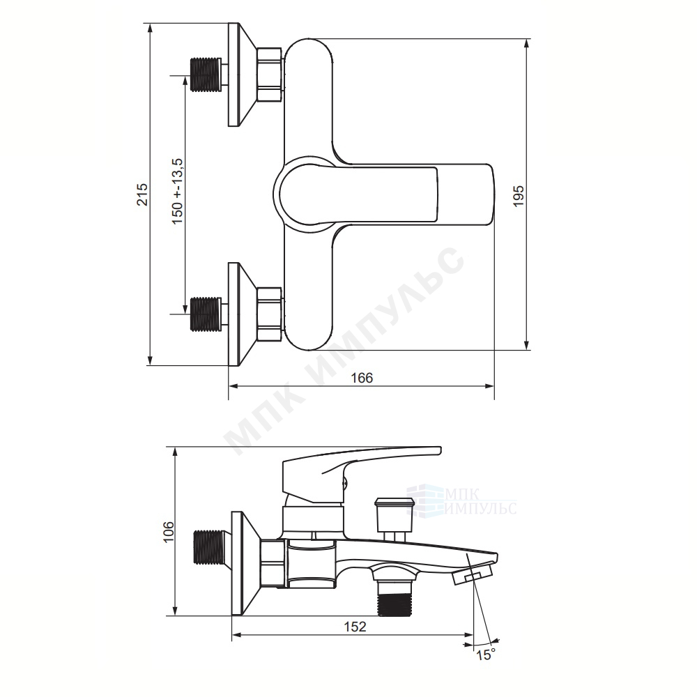 Смеситель для ванны с душем одноручный хром Eclipse 2.0 Damixa 481000000