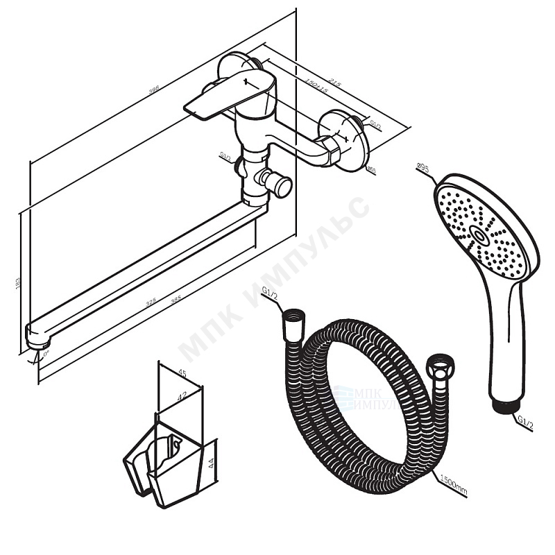 Смеситель для ванны с душем одноручный хром Gem AM.PM F90A90100