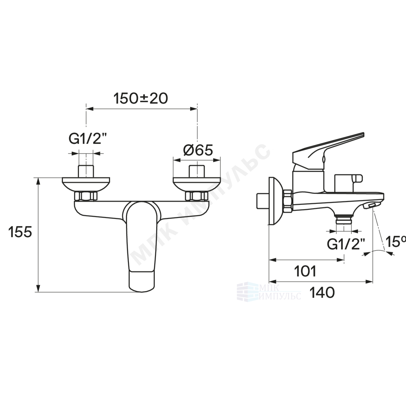 Смеситель для ванны с душем одноручный хром Кант Santek WH5A10002C001