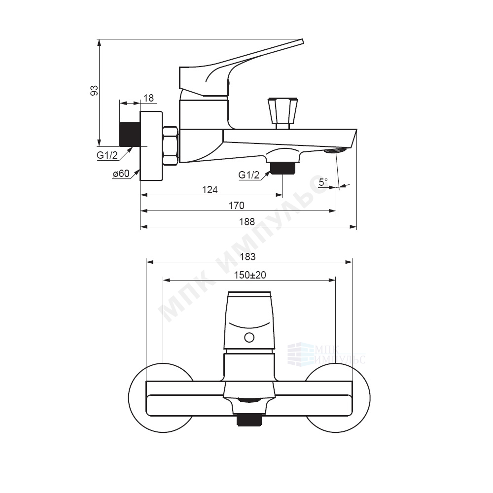 Смеситель для ванны с душем одноручный хром Merkur Damixa 401000000