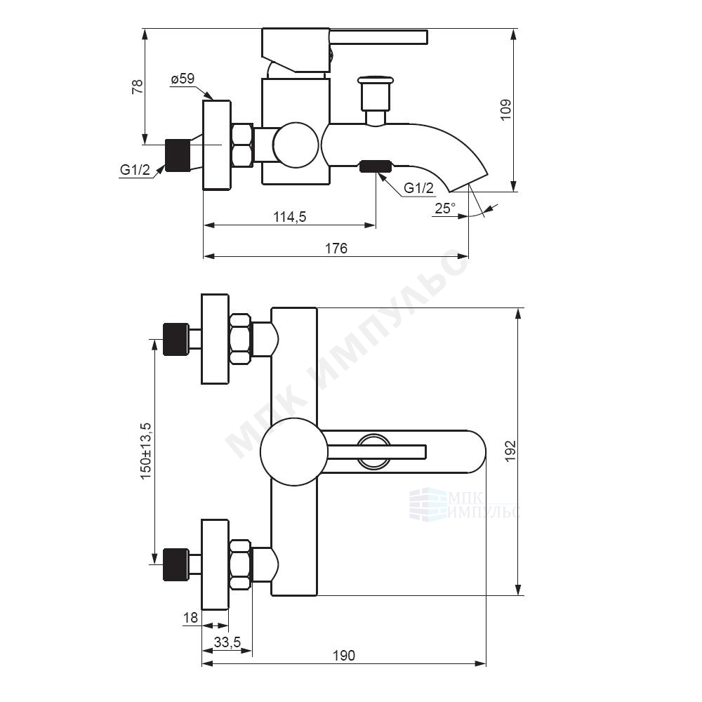 Смеситель для ванны с душем одноручный хром Scandinavian Pure Damixa 361000000
