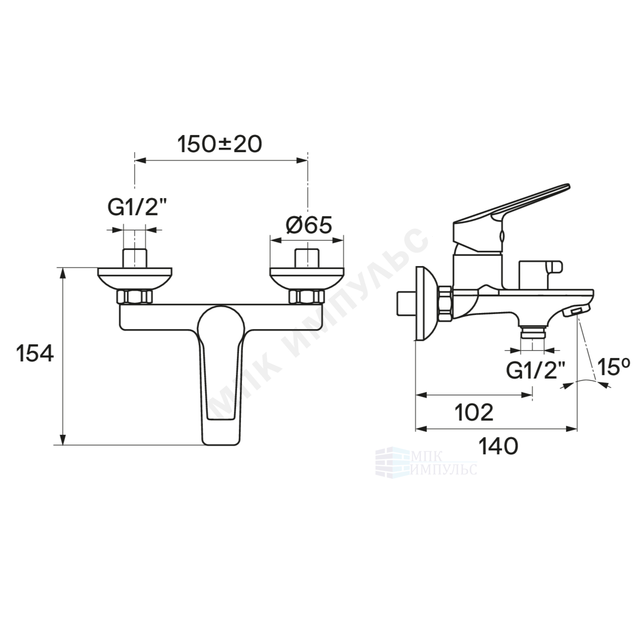 Смеситель для ванны с душем одноручный хром Венга Santek WH5A10003C001