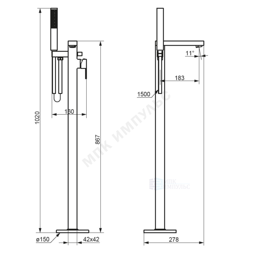 Смеситель для ванны с душем ручка сбоку одноручный хром Gala Damixa 535000000