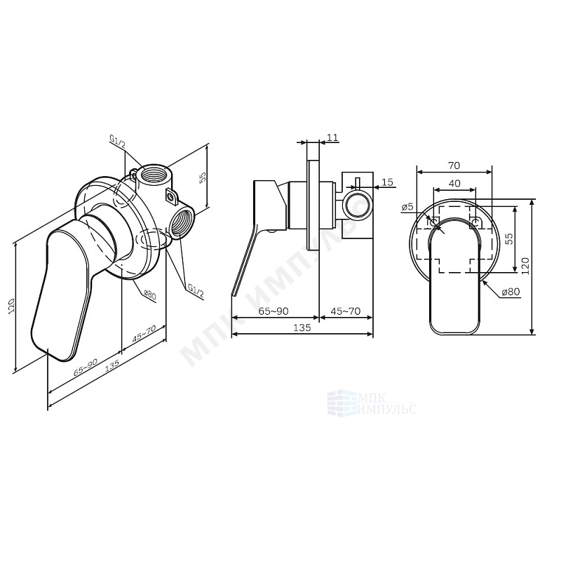 Смеситель встраиваемый для душа одноручный хром X-Joy AM.PM F85A65000