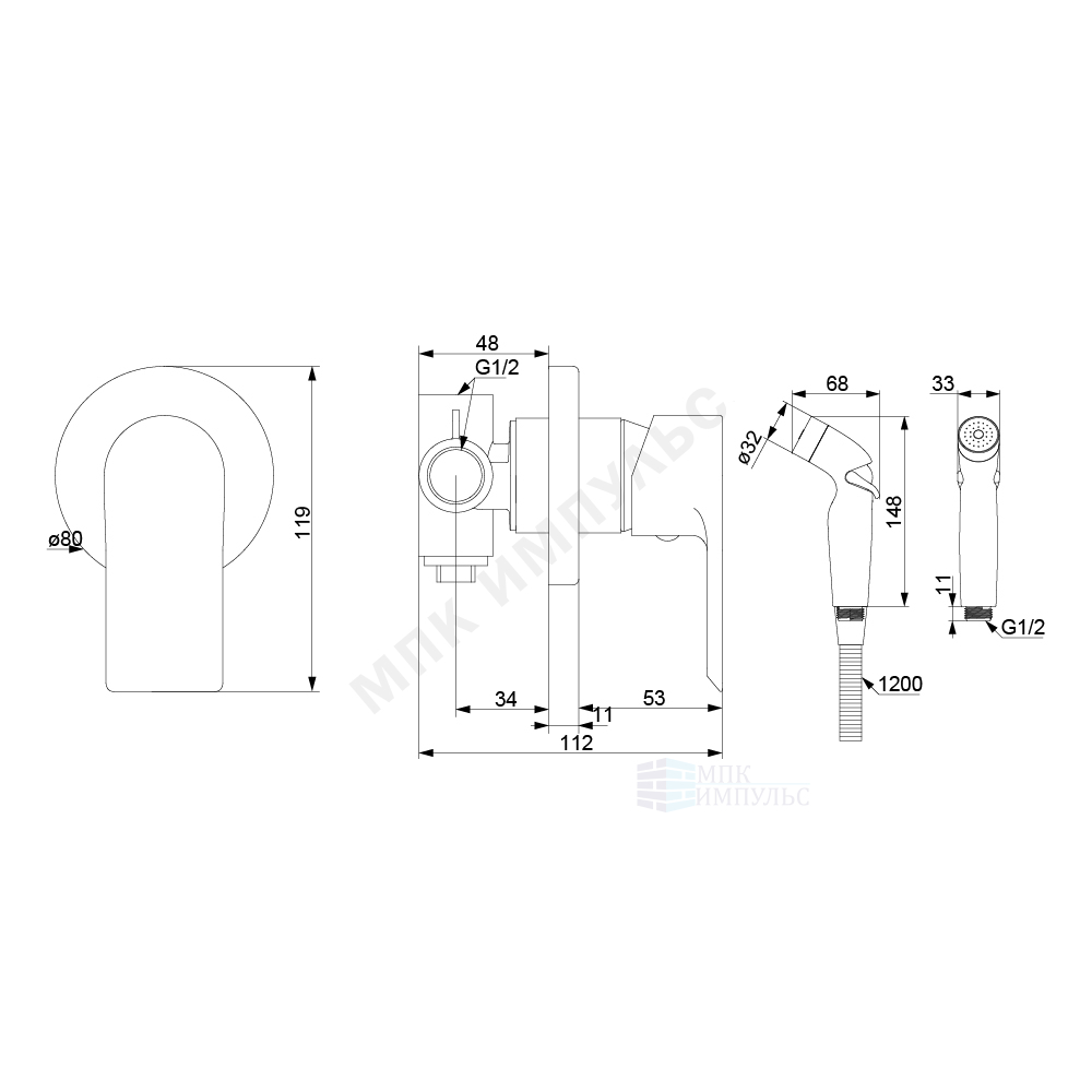 Смеситель встраиваемый для гигиенического душа одноручный черный Apollo Damixa 477510300