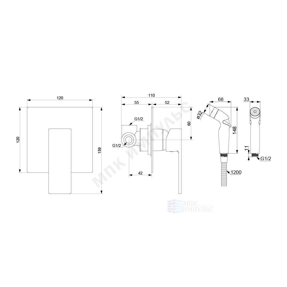 Смеситель встраиваемый для гигиенического душа одноручный черный Gala Damixa 537510300