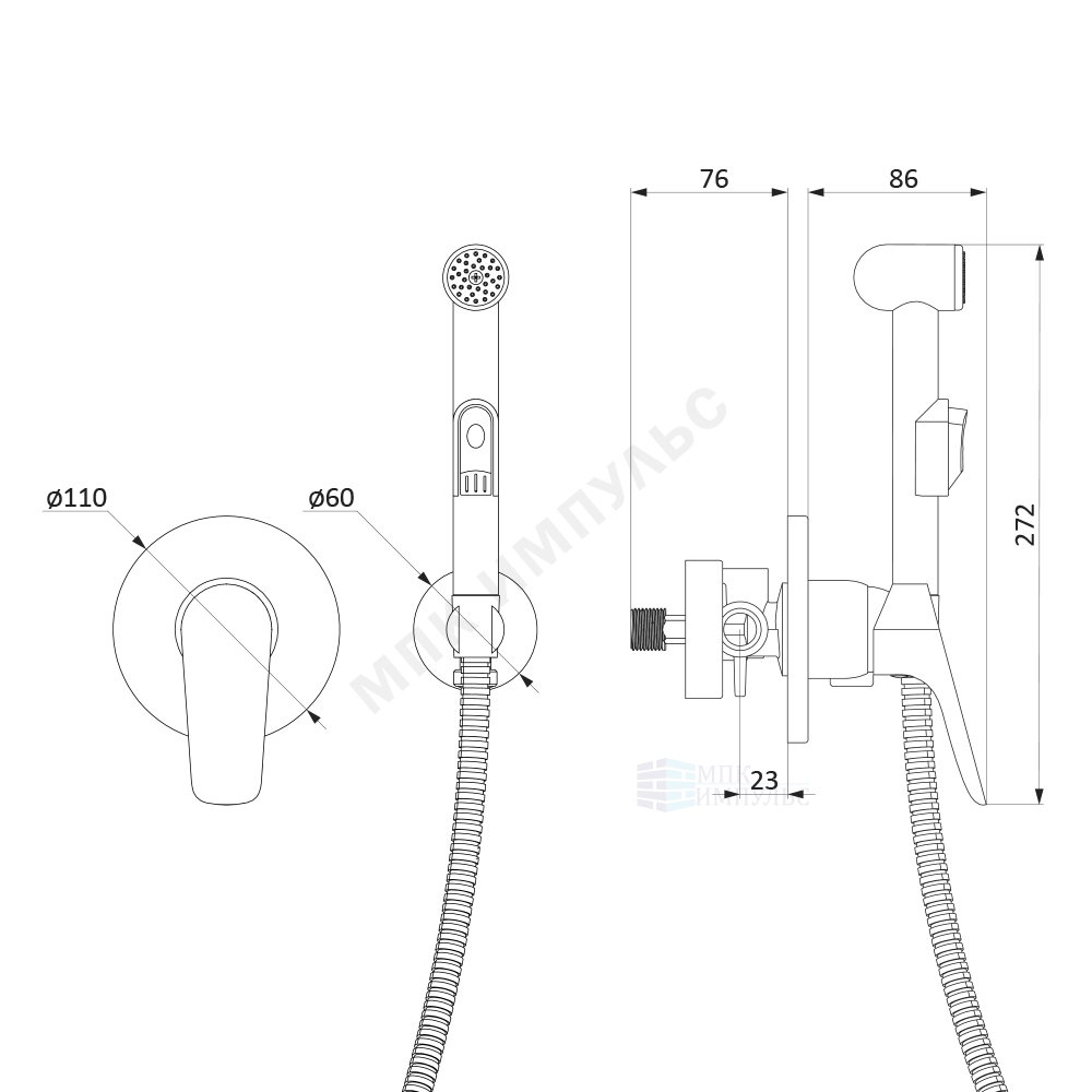 Смеситель встраиваемый для гигиенического душа одноручный хром Jupiter Damixa 777510001