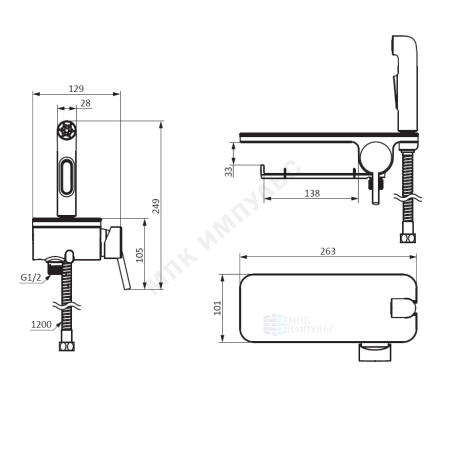 Смеситель встраиваемый для гигиенического душа одноручный с полкой и держателем туалетной бумаги хром Jupiter Damixa 773500001