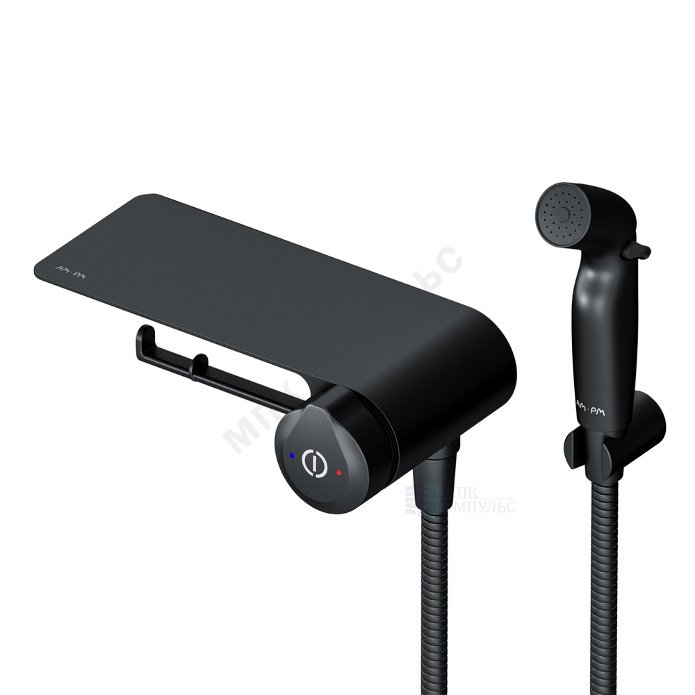Смеситель встраиваемый для гигиенического душа порционный (нажимной) с полкой и держателем туалетной бумаги черный X-Joy AM.PM F0H85A822