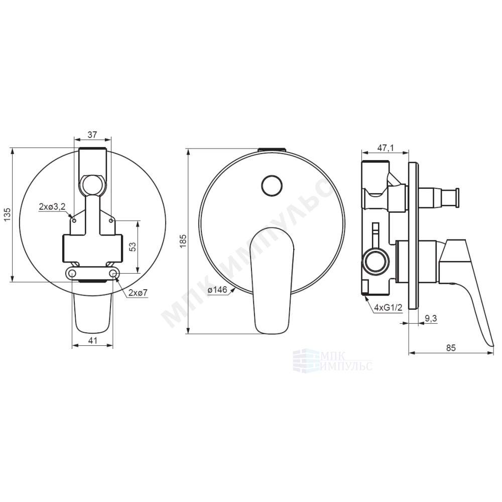 Смеситель встраиваемый для ванны с душем одноручный хром Jupiter Damixa 777100000