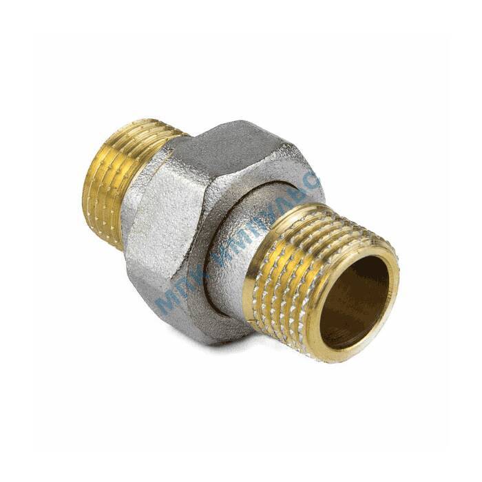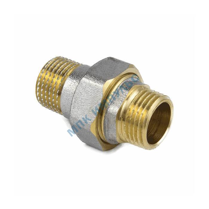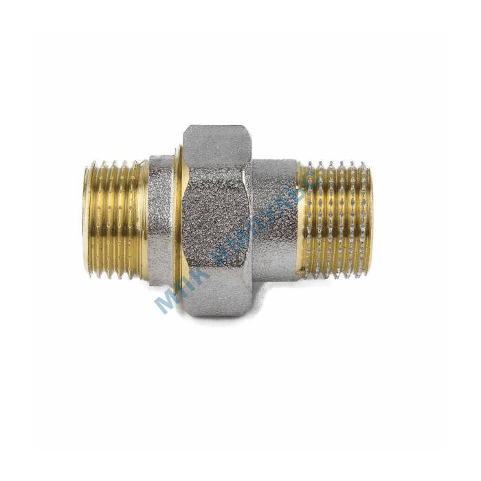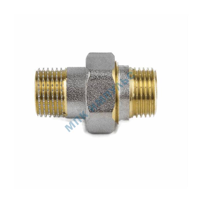 Соединитель латунь никель американка Ду 15 (1/2″) прямой НР/НР 9014 ГОСТ 32585-2013 Aquasfera 9014-01