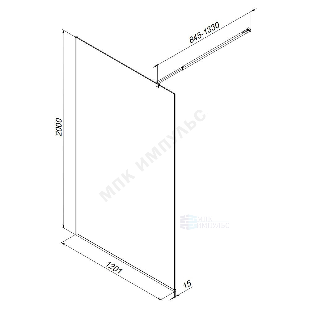 Стенка душевая Func 1200х2000 мм прозрачное стекло алюминиевый профиль, хром матовый AM.PM W84WI-120-F1-MTE