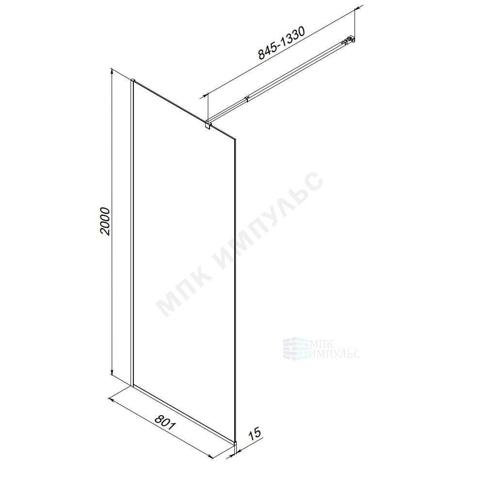 Стенка душевая Func 800х2000 мм прозрачное стекло алюминиевый профиль, хром матовый AM.PM W84WI-80-F1-MTE