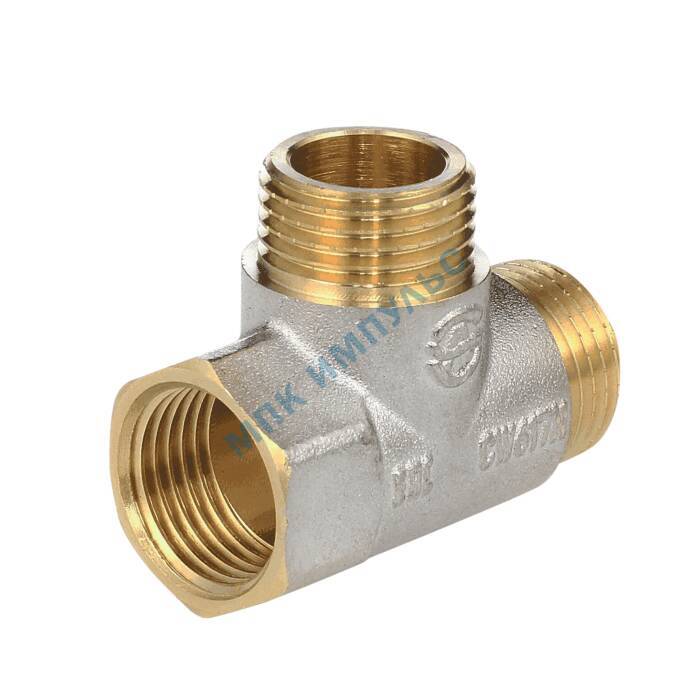 Тройник латунь никель Ду 15 (1/2″) ВР/НР/НР Aquasfera 9035-01