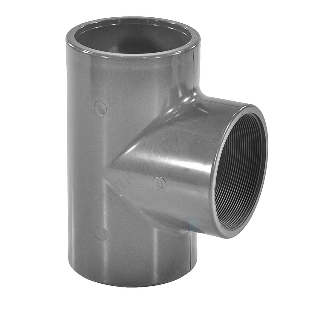 Тройник НПВХ Дн 110х4″х90гр Ру16 серый напорный ВР под клеевое соединение Aquaviva TWT1100