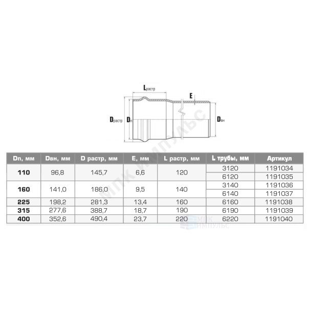 Труба НПВХ SDR17 Дн 160х9,5 Ру16 L=3,14м серая напорная раструбная под соединение с уплотнительным кольцом 45С в/к Хемкор 1191036
