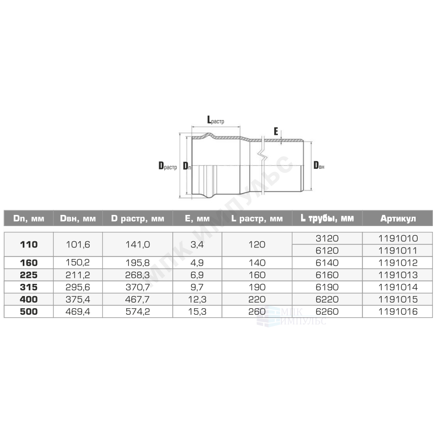 | Длина раструба | L=260 мм |