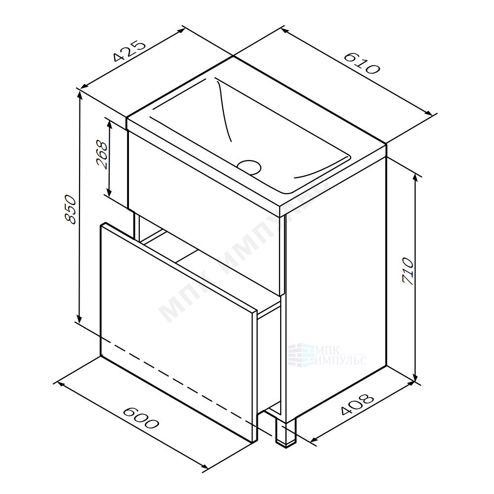 Тумба под умывальник 60 Gem графит AM.PM M90FSX06022GM32