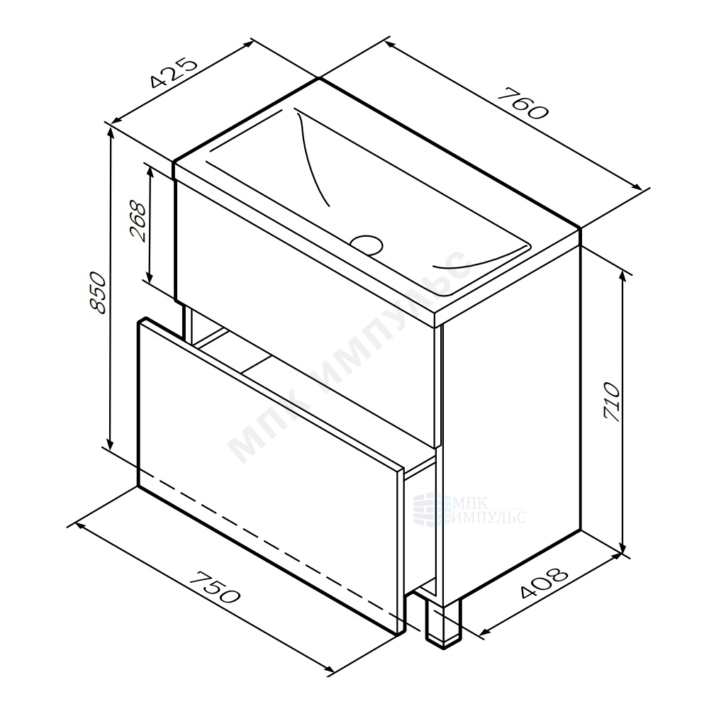 Тумба под умывальник 75 Gem графит AM.PM M90FSX07522GM32