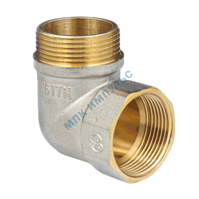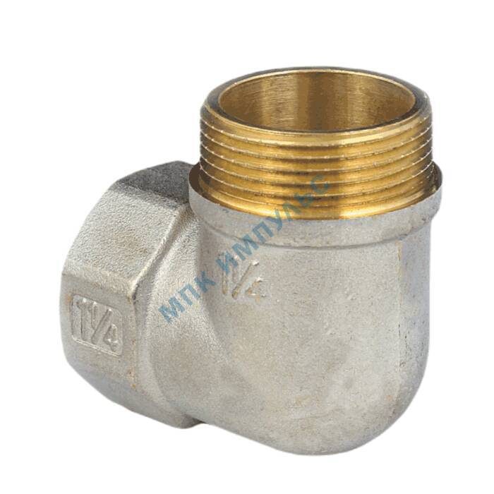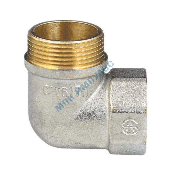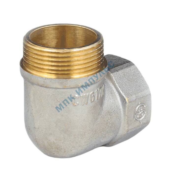 Угольник латунь никель реборда Ду 20 (3/4″) ВР/НР 9006 ГОСТ 32585-2013 Aquasfera 9006-02