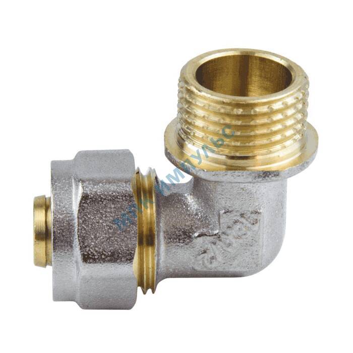 Угольник МП латунь никель обжим Дн 16х3/4″х90гр НР ГОСТ 32415-2013 7006 Aquasfera 7006-02 .