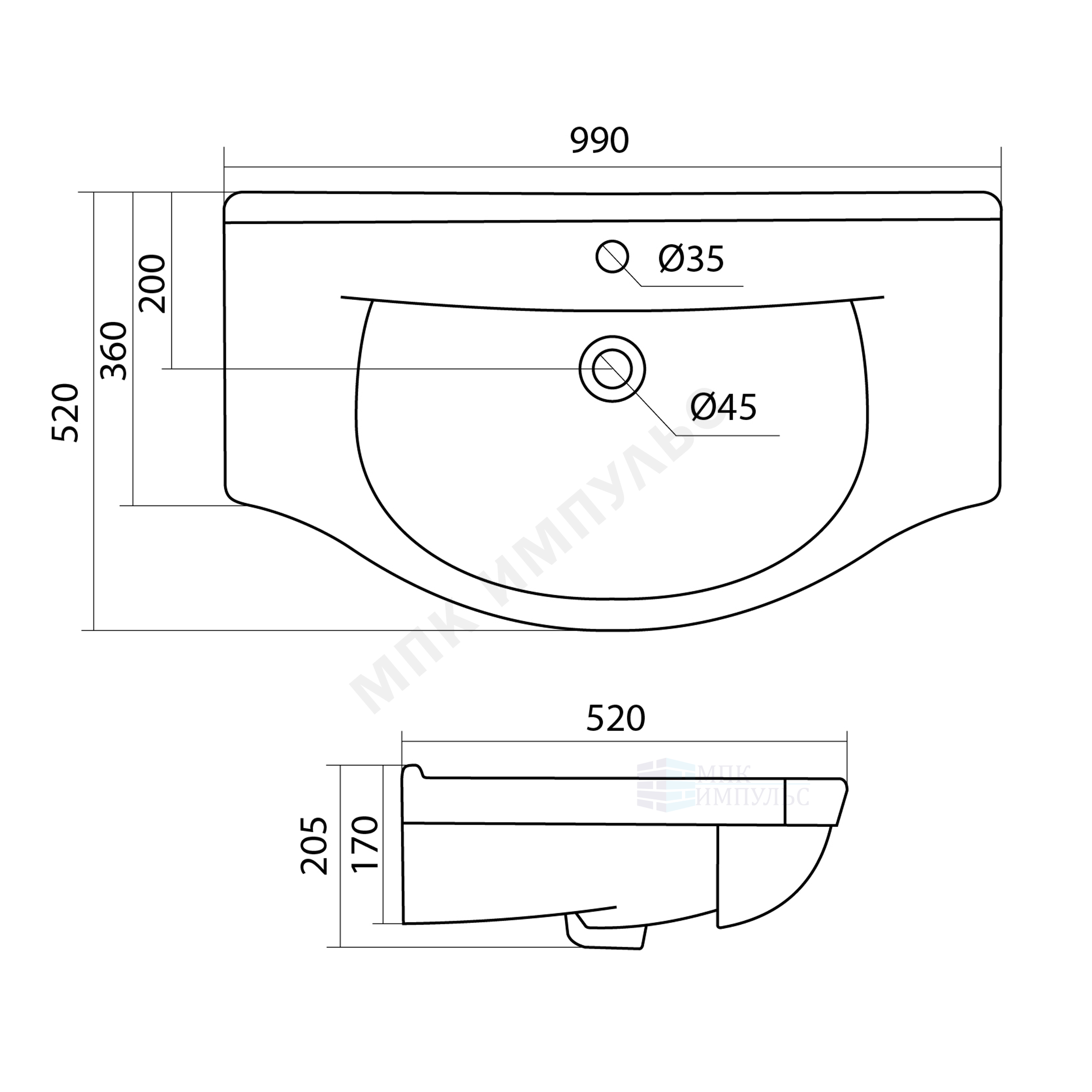 Умывальник мебельный Эльбрус 100 1 отверстие под смеситель по центру Santek 1.WH11.0.255