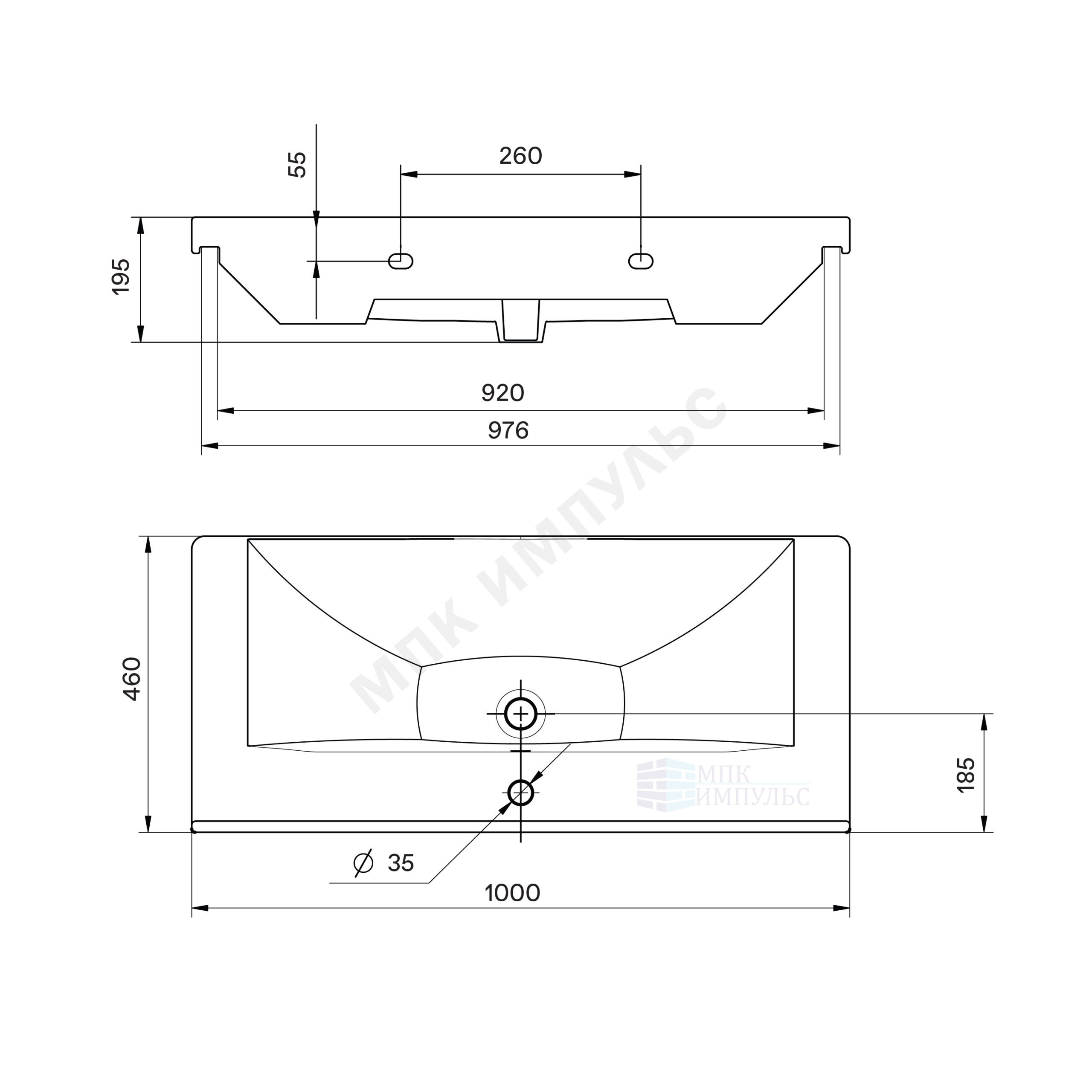 Умывальник мебельный Миранда 100 1 отверстие под смеситель по центру Santek 1.WH30.2.249