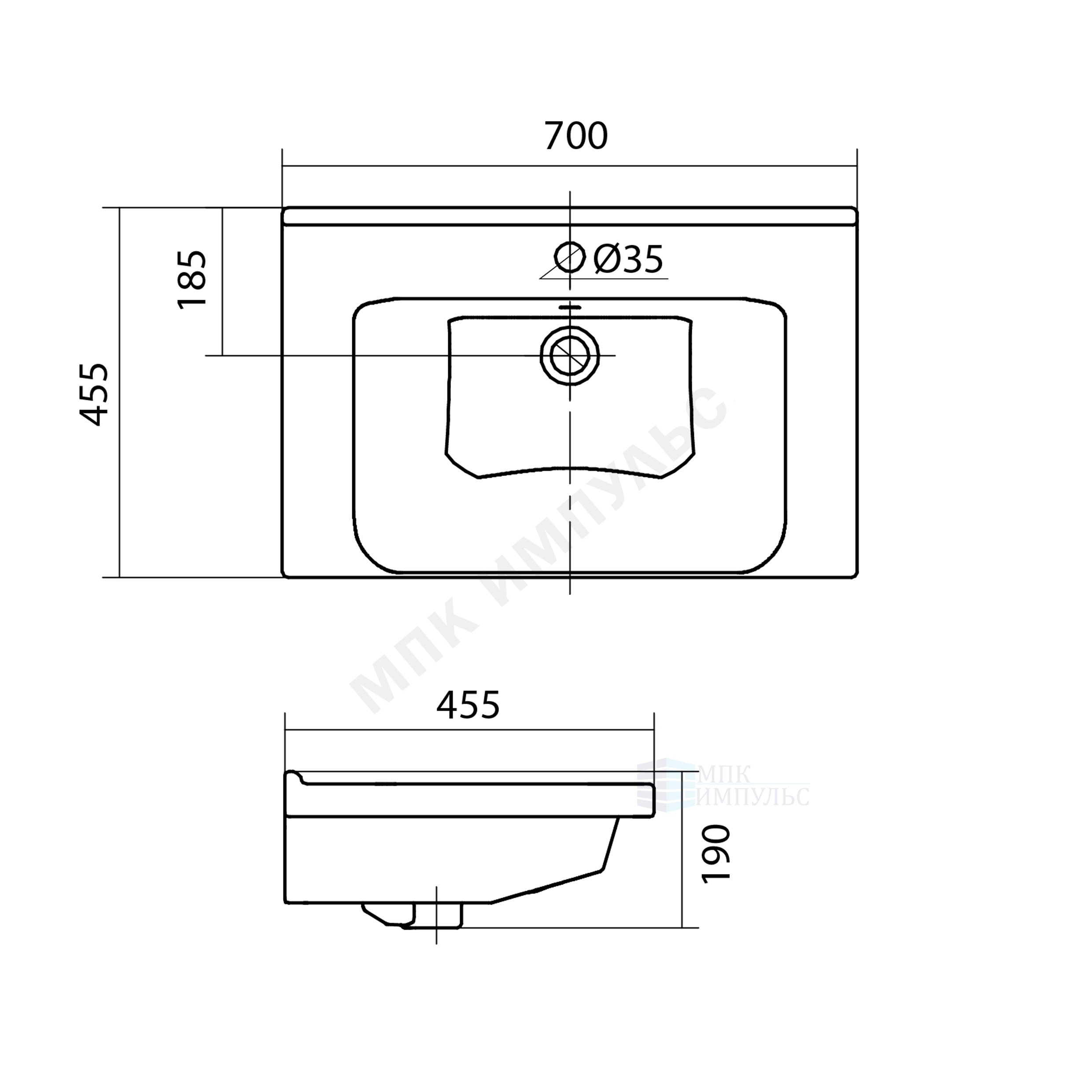 Умывальник мебельный Миранда 70 1 отверстие под смеситель по центру Santek 1.WH30.2.250