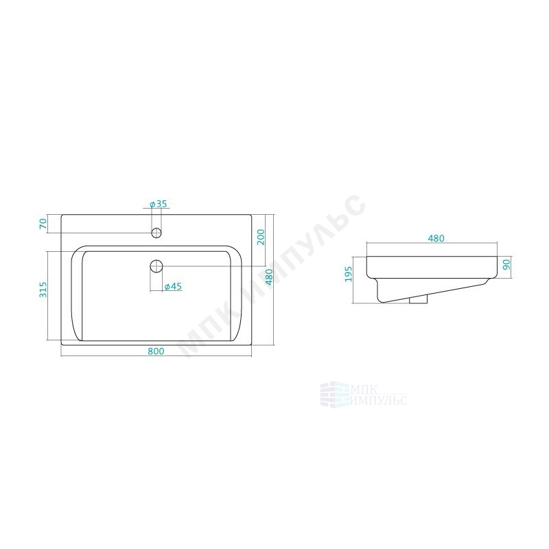 Умывальник мебельный Тигода 80 1 отверстие под смеситель по центру Santek 1.WH30.2.084