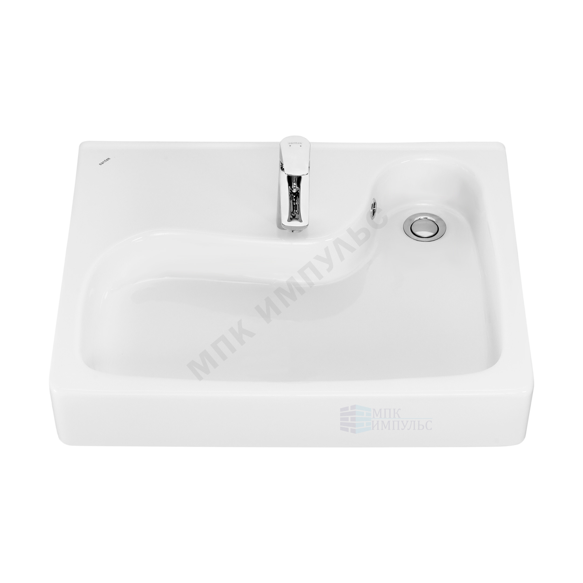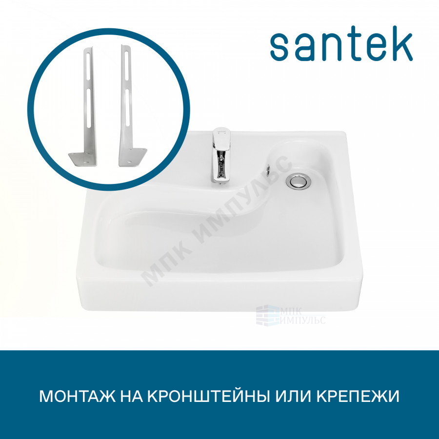 Умывальник подвесной над стиральной машиной Клио 50 1 отверстие под смеситель по центру без кронштейнов и сифона белый Santek 1.WH50.1.769