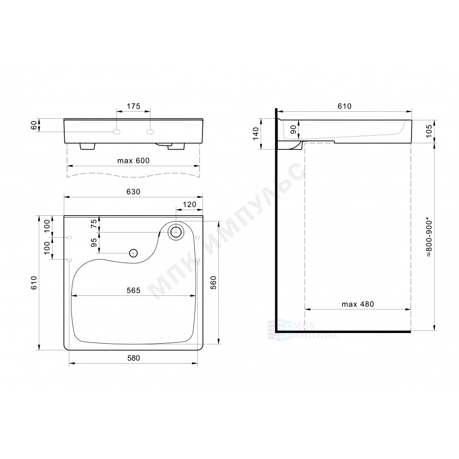 Умывальник подвесной над стиральной машиной Клио 60 1 отверстие под смеситель по центру белый Santek 1.WH50.1.779