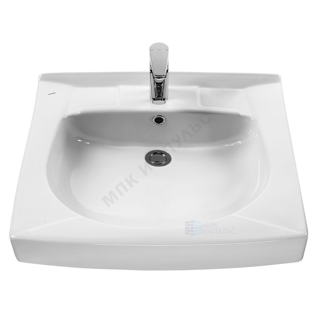 Умывальник подвесной над стиральной машиной Пилот 60 1 отверстие под смеситель по центру с кронштейнами и сифоном белый Santek 1.WH30.1.971