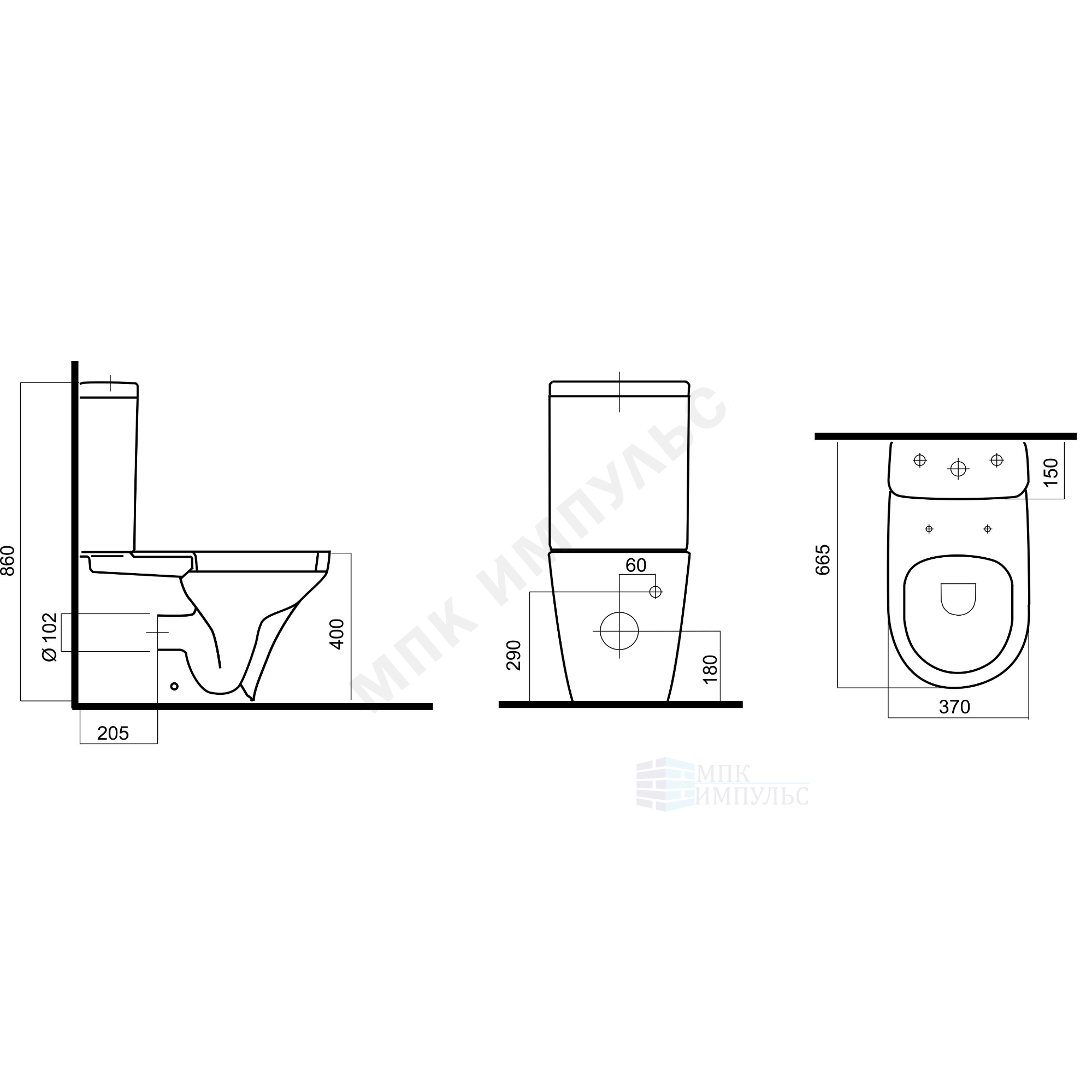 Унитаз-компакт горизонтальный выпуск нижний подвод с арматурой 2/реж слив кнопка без сиденья белый Inspire AM.PM C508607WH