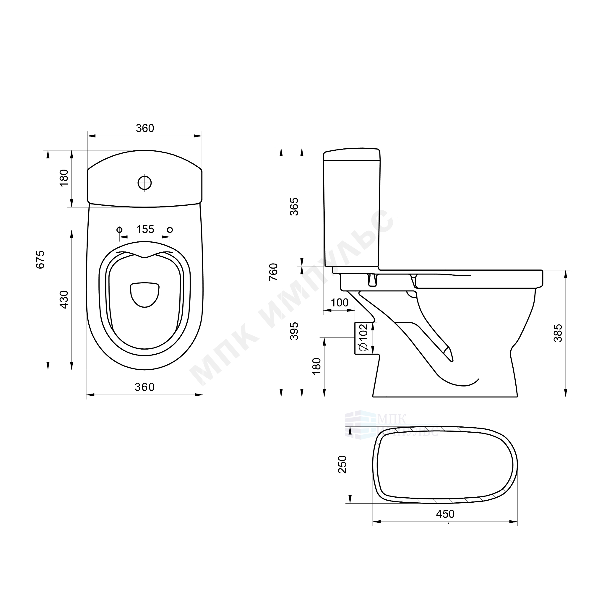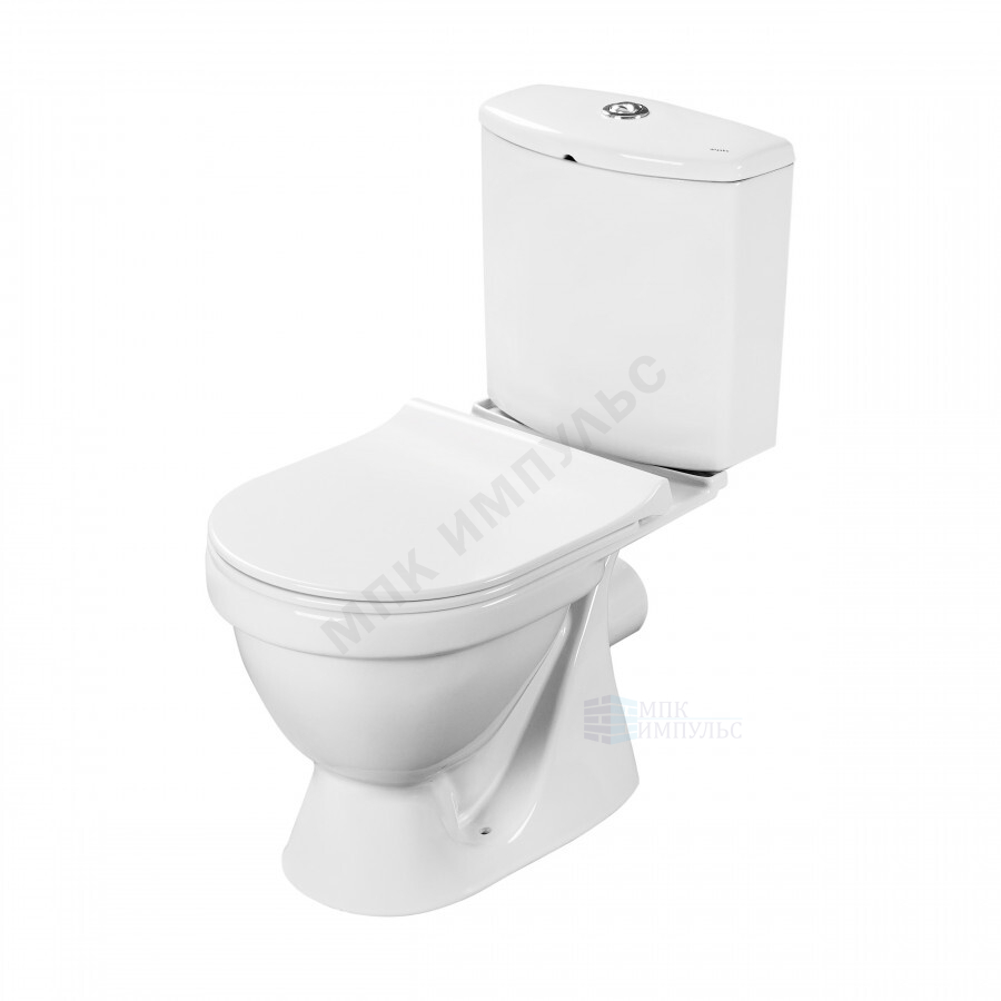 Унитаз-компакт горизонтальный выпуск нижний подвод с арматурой 2/реж слив кнопка с сиденьем дюропласт микролифт белый Алькор Santek 1.WH50.1.835