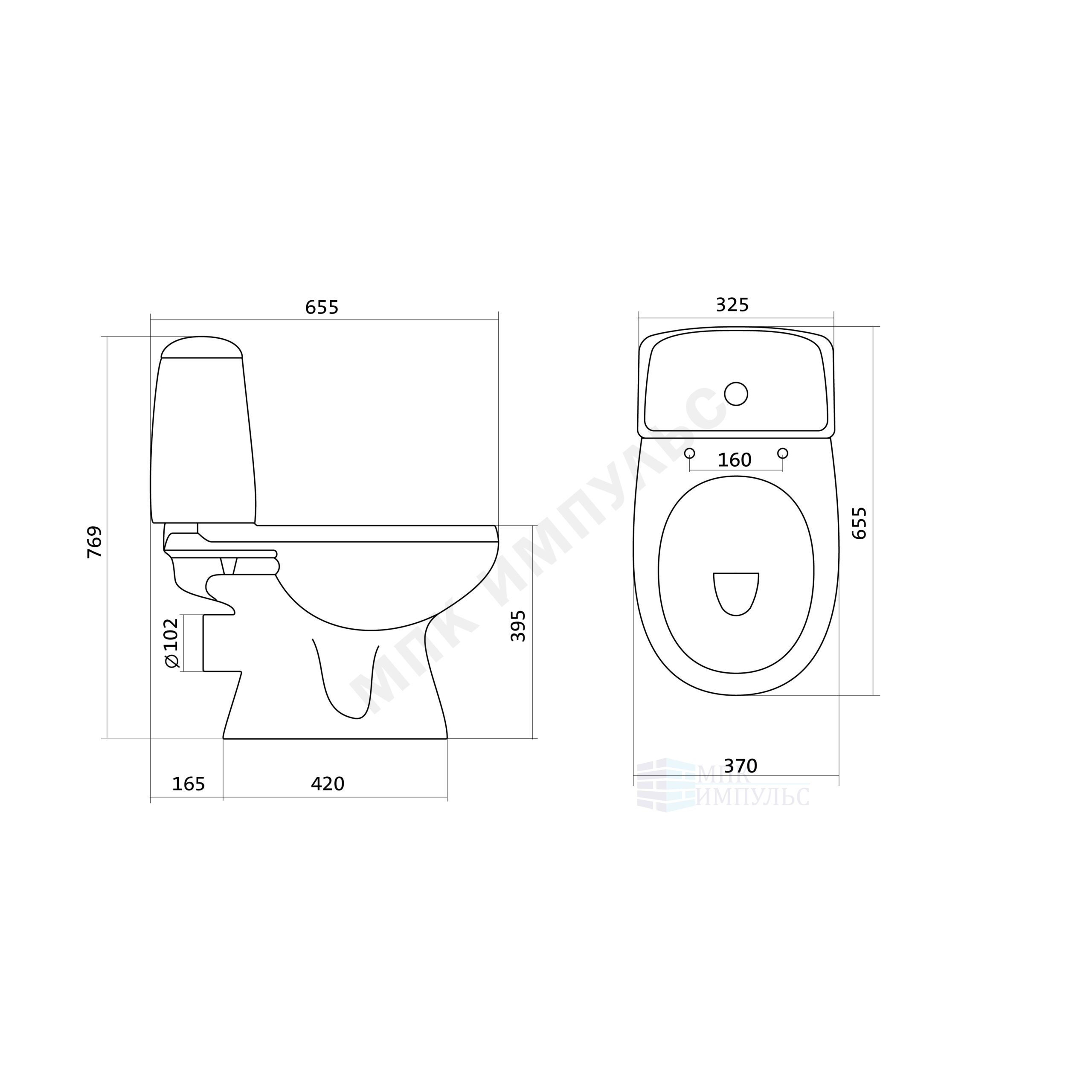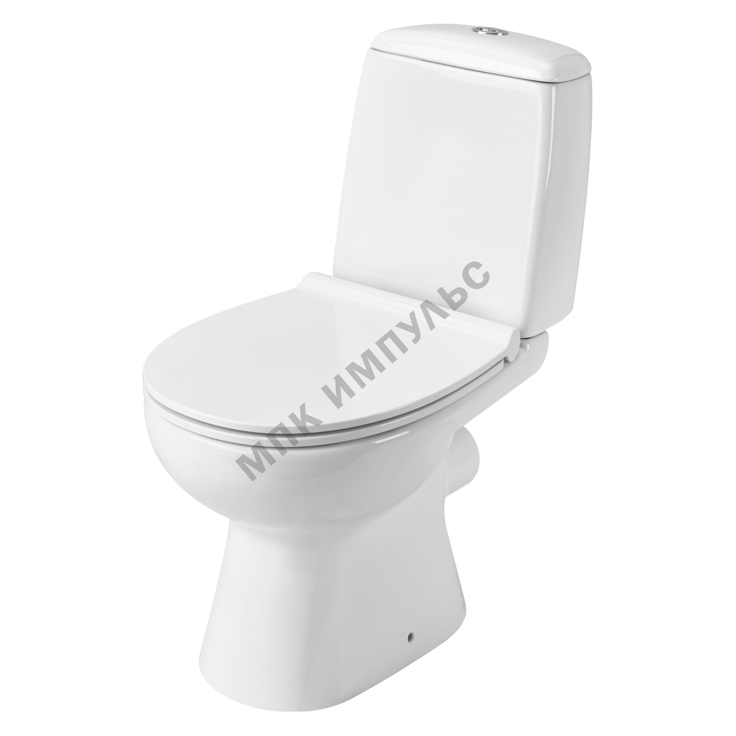 Унитаз-компакт горизонтальный выпуск нижний подвод с арматурой 2/реж слив кнопка с сиденьем дюропласт микролифт белый Цезарь Santek 1.WH30.2.415