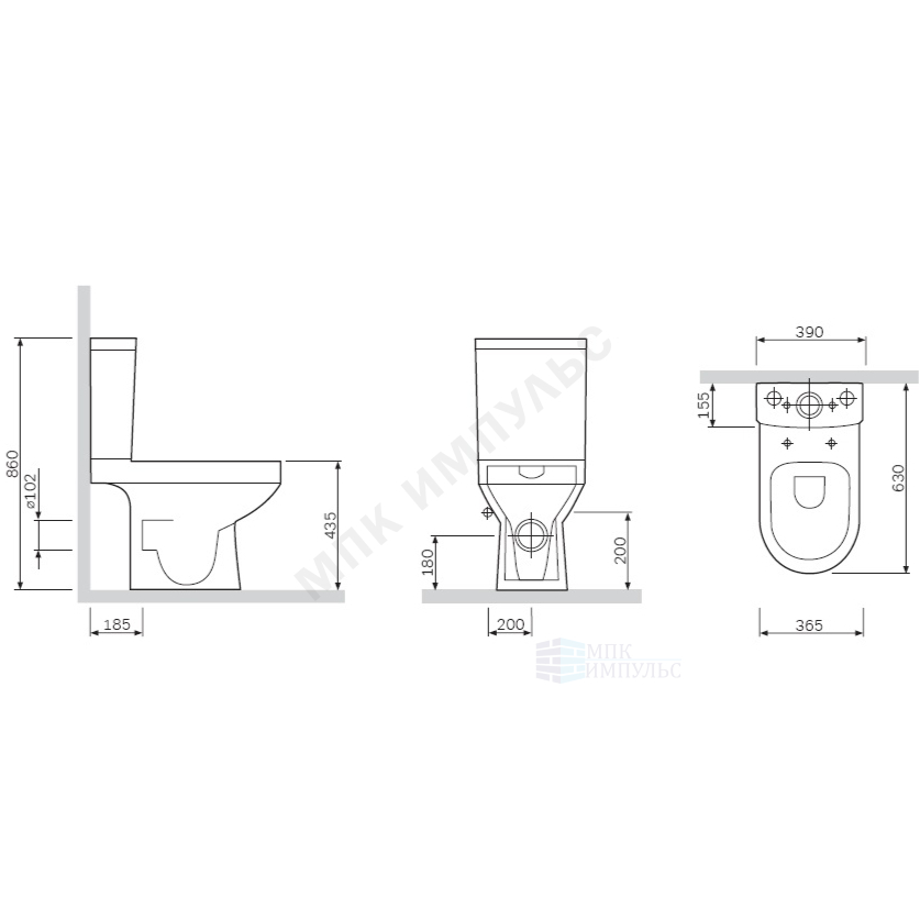 Унитаз-компакт горизонтальный выпуск нижний подвод с арматурой 2/реж слив кнопка с сиденьем дюропласт микролифт белый Spirit V2.0 AM.PM C708600SC