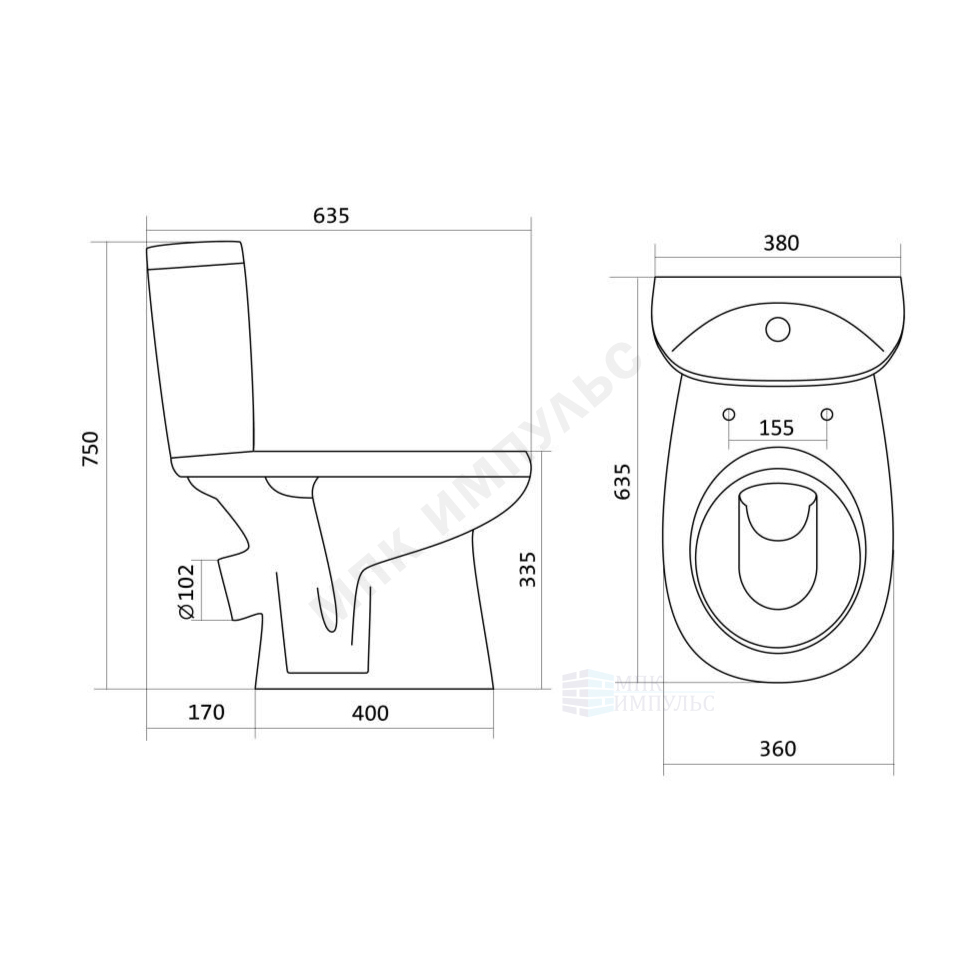 | Комплект поставки | Унитаз-компакт (чаша, бачок, арматура, комплект креплений ), сиденье дюропласт |